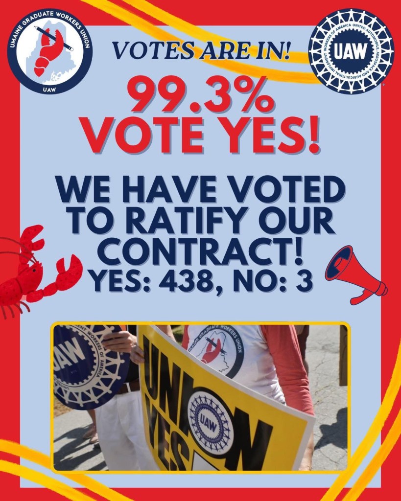 - Portland Press Herald: UMaine graduate workers ratify first union contract